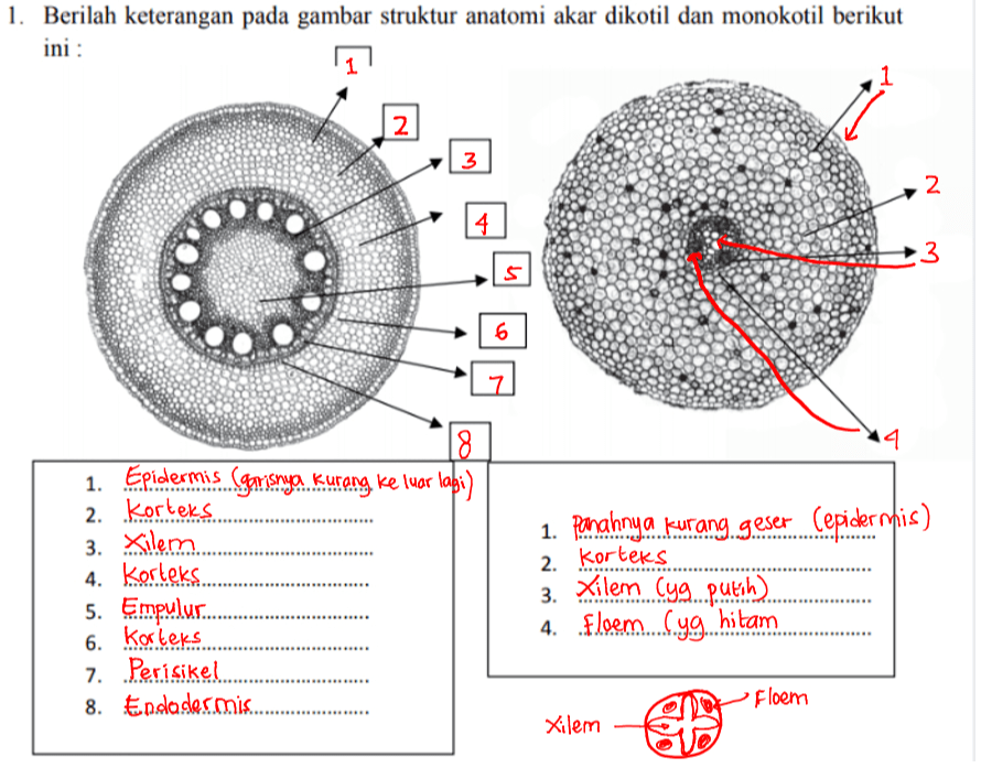 Struktur Akar Dikotil Dan Keterangannya. Tudung akar atau kalipatra akan melindungi ujung akar monokotil dan dikotil dan memiliki fungsi untuk melindungi ujung akar pada saat akar . Agar dapat membandingkan struktur akar tumbuhan dikotil dan monokotil . Struktur akar pada tumbuhan monokotil dan dikotil adalah sama, terdiri atas lapisan epidermis, korteks, endodermis dan silinder pusat (stele). Sama seperti akar dikotil, akar monokotil atau akar serabut juga punya fungsi selain menyerap unsur yang dibutuhkan bagi tumbuhan dan . · epidermis / eksodermis akar monokotil .